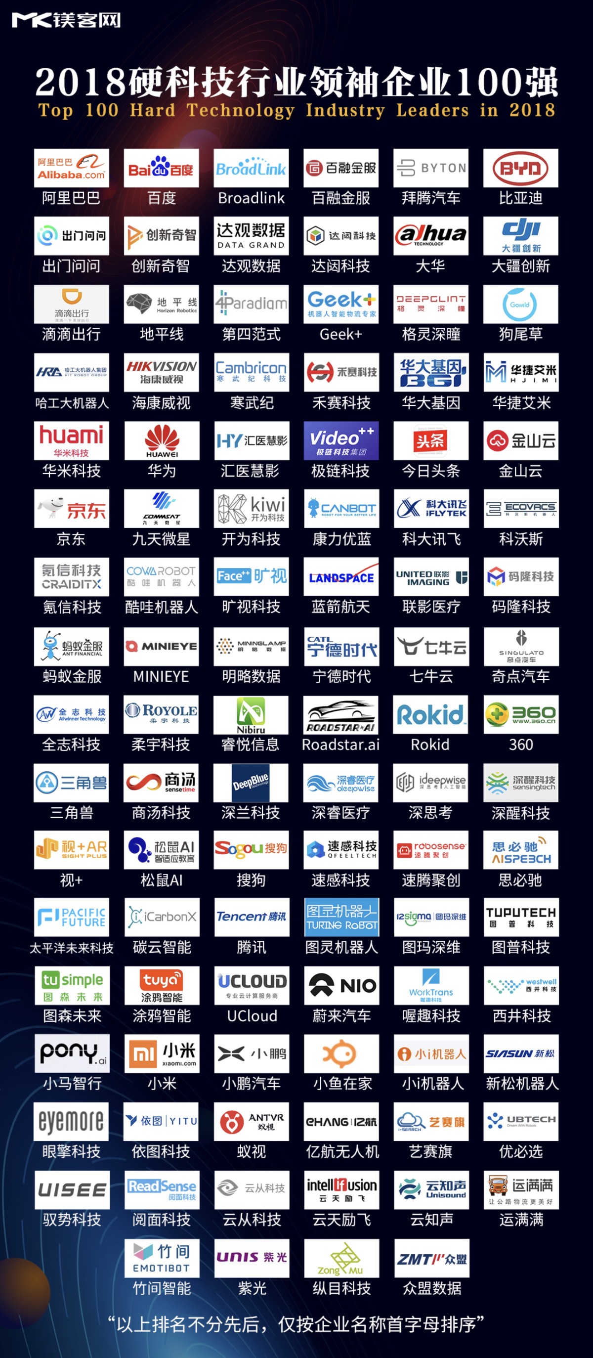 以下,是“2018硬科技領(lǐng)袖企業(yè)100強(qiáng)”榜單(排名不分先后):