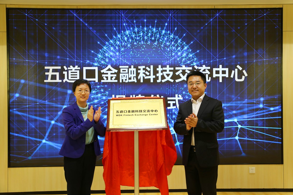圖為“五道口金融科技交流中心”揭牌儀式(左為靳暉,右為薛正華)